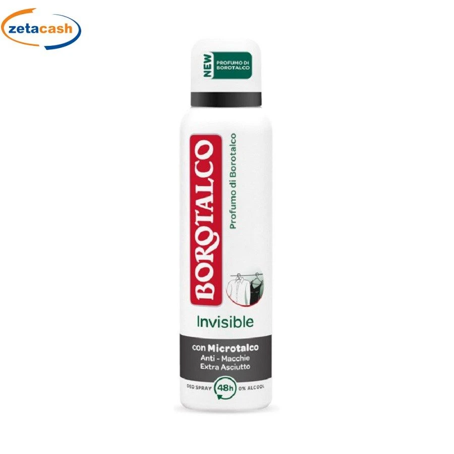 Borotalco deo spray 150 ml invisible original, con microtalco anti macchie, 48H. non trasferisce aloni, odori e macchie creando un effetto barriera tra la pelle e i vestiti.