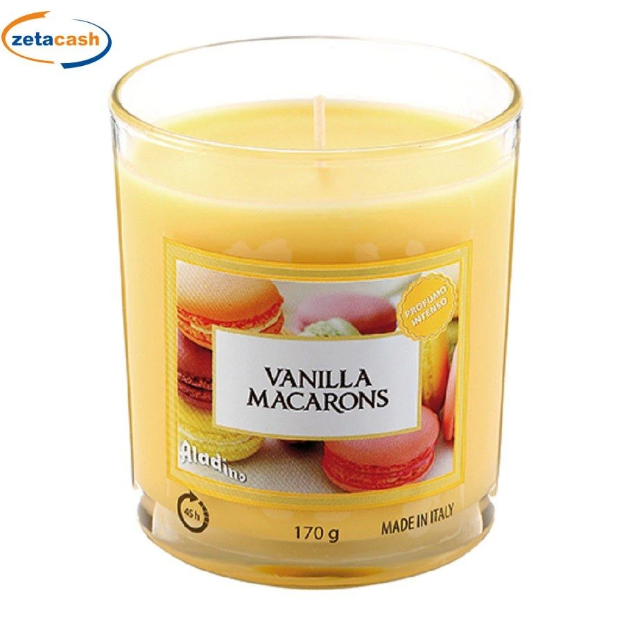 Candela profumata in vasetto vetro profumo intenso vanilla macarons, 170gr, durata 45 ore.
