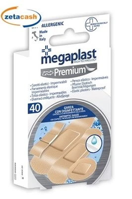 Cerotti protettivi Premium 40 pezzi Megaplast, impermeabili, effetto barriera, anatomici, ultrasottili, morbidi e protettivi.