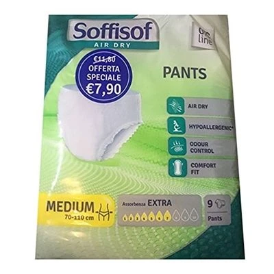 Mutande assorbenti monouso medio, arricchito con aloe per la massima delicatezza, aiuta a ridurre l’insorgere dei cattivi odori, 9 pezzi.