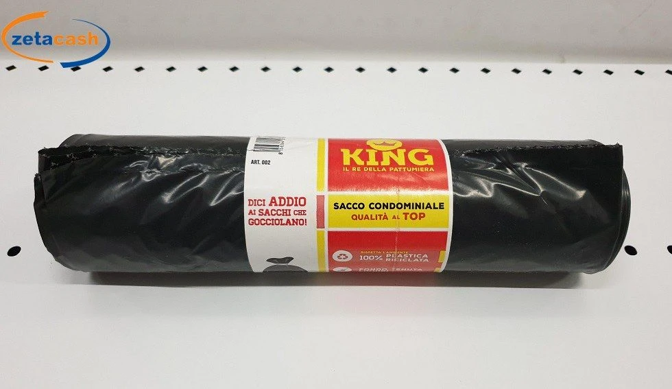 Sacchi condominiali neri 100% plastica riciclata, fondo tenuta liquidi.
