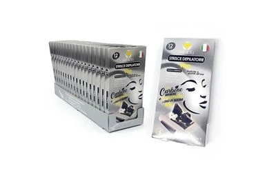Strisce depilatorie viso arricchite con vitamina E, burro di karitè, olio di cocco con carbone naturale, camomilla e olio di jojoba bio 12 pezzi