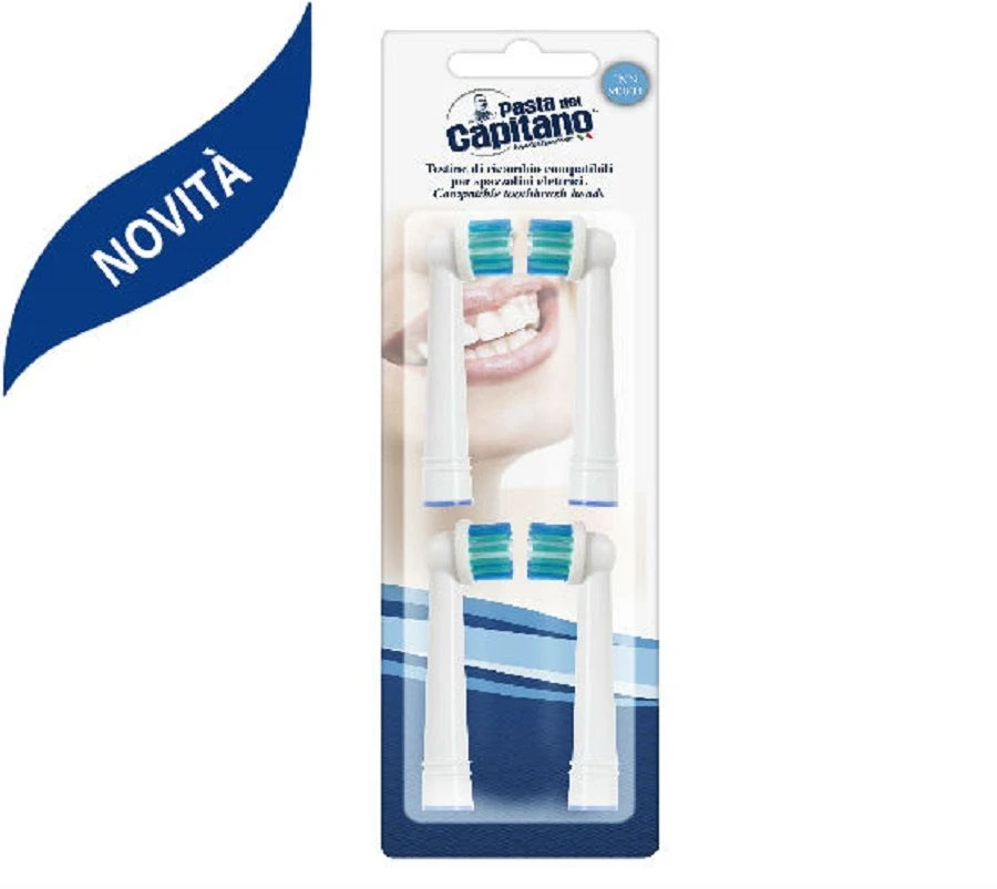 Testine di ricambio spazzolini pasta del capitano compatibili con spazzolini elettrici Oral B,4 pezzi con differenti anellini colorati